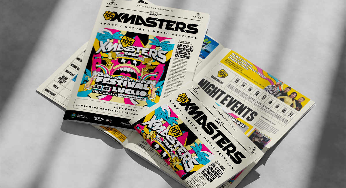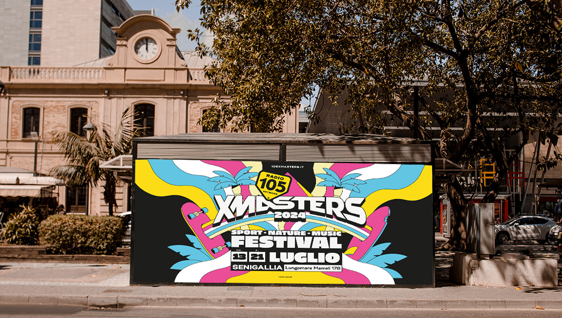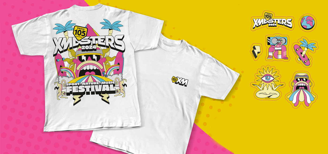 L’idea della grafica di XMasters 2024 nasce da un’esplosione di colori pop e vibranti, ispirati al giallo iconico di Radio 105 e a un immaginario surrealista.